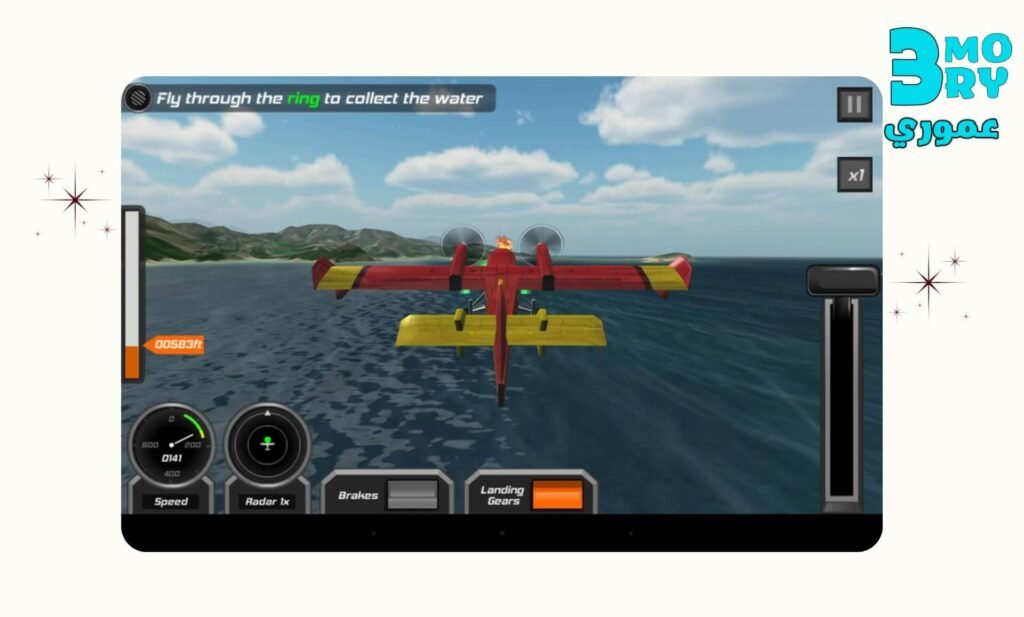 التحكم بيكون مرن وسهل جدا وهتتعلم بسرعة عشان توجه الطائرة او تستخدم ازرار اللمس اللعبة مش وقفت طيران عادي لكن ضافت مهمات ممتعة ومختلفة زي انك ممكن تشارك في عملية انقاذ او نقل الركاب بامان وغيرو من المهام كل مهمه بتحتاج تركيز واستراتيجية مختلفة ودة بيخلي كل مرحلة ليها متعتها هتلاقي الكتير من الطايرات تختار براحتك منها وكل طيارة ليها ميزة و اسلوب قبادة خاص ودة غير ان اللعبة بتعيشك ظروف المناخ عشات التحدي يزداد اثارة